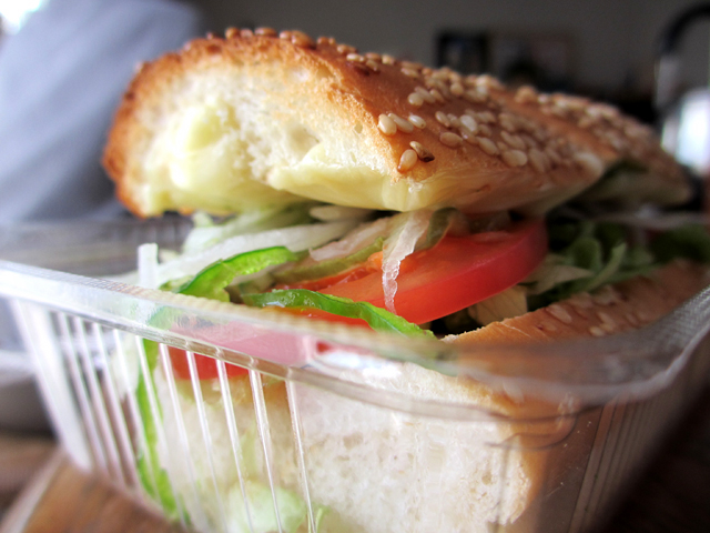 珍しく火曜日が仕事おやすみだったので、照り焼きチキンを得サブで食べる絶好のチャンス!ランチでSUBWAY! 照り焼きチキンとベジーデライトを注文して、家で写真パシャパシャ撮って、いざ食べようと思ったら、 ドレッシングが逆だった!!ショック。。。 照り焼きチキン→チリトマトソース、ベジーデライト→バジルソース で注文したのに、 照り焼きチキン→バジルソース、ベジーデライト→チリトマトソース になってる! 慟哭しました。 気づかずに撮った写真(そういやバジルソースが見えてるよ) 照り焼きチキンの3分の2をチリトマトソースのかかったベジーデライトに移して食べました。そんなに問題なかったです。 そして残ったチキンをバジルソースのドレッシングのサンドイッチで食べたんですが、これもまたそんなに悪くなかった。結果オーライ。バジルソースのにんにく風味が甘い照り焼きチキンに意外と合う。 照り焼きチキンはとてもこってりしていて、しかも結構量が多い。(これでベジーデライト+30円ってのはまことに驚き) だからベジーデライトを買って、チキンを分けても十分です。 ちなみにSUBWAY側がおすすめする照り焼きチキンに合うドレッシングはマヨネーズです。私はマヨネーズがダメなので、結構迷ってしまいます。チリトマトソースは悪くないかもしれないけど、すっごく合うってわけじゃなかった。塩こしょうで十分かもしれん。 【今日のメニュウ】 得サブ・照り焼きチキン(320円) ブレッド:ウィート(トースト) ドレッシング:チリトマトソース 野菜:すべて多めベジーデライト(290円) ※写真なし ブレッド:ハニーオーツ(トースト) ドレッシング:バジルソース 野菜:すべて多め得サブとベジーデライトで610円というのが私の定番になりつつある。 昼食に610円はちょっと贅沢だね。