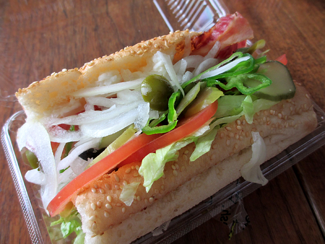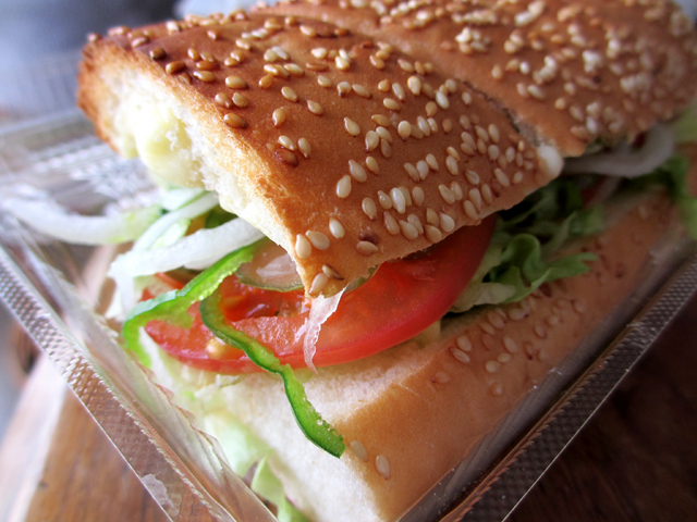 珍しく火曜日が仕事おやすみだったので、照り焼きチキンを得サブで食べる絶好のチャンス!ランチでSUBWAY! 照り焼きチキンとベジーデライトを注文して、家で写真パシャパシャ撮って、いざ食べようと思ったら、 ドレッシングが逆だった!!ショック。。。 照り焼きチキン→チリトマトソース、ベジーデライト→バジルソース で注文したのに、 照り焼きチキン→バジルソース、ベジーデライト→チリトマトソース になってる! 慟哭しました。 気づかずに撮った写真(そういやバジルソースが見えてるよ) 照り焼きチキンの3分の2をチリトマトソースのかかったベジーデライトに移して食べました。そんなに問題なかったです。 そして残ったチキンをバジルソースのドレッシングのサンドイッチで食べたんですが、これもまたそんなに悪くなかった。結果オーライ。バジルソースのにんにく風味が甘い照り焼きチキンに意外と合う。 照り焼きチキンはとてもこってりしていて、しかも結構量が多い。(これでベジーデライト+30円ってのはまことに驚き) だからベジーデライトを買って、チキンを分けても十分です。 ちなみにSUBWAY側がおすすめする照り焼きチキンに合うドレッシングはマヨネーズです。私はマヨネーズがダメなので、結構迷ってしまいます。チリトマトソースは悪くないかもしれないけど、すっごく合うってわけじゃなかった。塩こしょうで十分かもしれん。 【今日のメニュウ】 得サブ・照り焼きチキン(320円) ブレッド:ウィート(トースト) ドレッシング:チリトマトソース 野菜:すべて多めベジーデライト(290円) ※写真なし ブレッド:ハニーオーツ(トースト) ドレッシング:バジルソース 野菜:すべて多め得サブとベジーデライトで610円というのが私の定番になりつつある。 昼食に610円はちょっと贅沢だね。