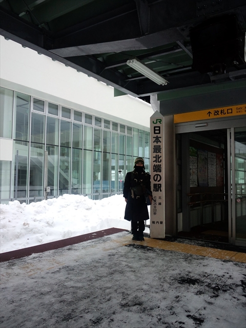 1月31日(木) 旅行2日め:札幌~稚内・宗谷岬 【朝食】 札幌駅近くのローソンでおにぎりと野菜ジュースを購入し、電車の中で食べた。 7:48 JR特急スーパー宗谷1号 「シカの出没で急ブレーキすることがございます」 という車内アナウンス。 音威子府から天塩中川の間で何頭かのシカを見つけた。 ▲日本最北端の駅にいる私 JRで稚内にたどりついた後はレンタカー。 (路線バスもあるにはあるが、便が少ない) 【昼食】 ノシャップ岬近くの「漁師の店」でお昼を食べようとするが、閉まっていた。 たまたま、そこのおじさんがいて、冬の間は営業していないんだと教えてくれた。 食べログにはそういう情報が載ってなく…(涙)。 ▲これはそのお店の軒先に干してあった鱈 仕方ないので、宗谷岬に向かう途中のセイコーマートでおにぎりと味噌汁を買い、 車の中で食べた。 ▲日本最北端の地にいる私 宗谷岬にある「日本最北端の地」と記された石碑の上にハチさんを乗せて写真を撮ろうとするが、 風が強くて断念せざるを得なかった。 宗谷岬郵便局で時間を使ってしまい、 次の目的地抜海港に辿り着いたのは17時半頃。 ここではアザラシが見られる、観察所もあるってことで来たのだが、 日が暮れていて何も見えない。観察所も閉まってた(16時まで、だそうだ)。 ただ、真っ暗な海の向こうで何か獣の鳴き声は聞こえるので、 それがきっとアザラシなんだろうと自分を慰めた。 あと、真っ暗でも真っ暗な様子を写真に撮っておけばよかったとあとで悔やんだ。 稚内駅を中心に、ノシャップ岬&抜海港、宗谷岬は方向が違い、 漁師の店の後、抜海港に行くか岬に行くか迷ったのだが、 郵便局も17時までしか開いてないし、仕方ない選択だった。 でも、もうこの季節に稚内に来ることはないだろうなぁー (宗谷岬に足跡つけたらそれ以上することが特にない)。 駅から岬に向かう路線バスはあるけど、 本数が少ないし、郵便局まで足を伸ばすことを考えたら、レンタカーを使ったのは正解。 抜海港にも行けるし。 【宿泊先】 本日のお宿は稚内全日空ホテル。 今回の旅行で一番豪華なホテル。 でも55日前割で4,200円と安かった!(それでも今回の旅行で一番宿泊費が高い) 【夕食】 夕食は駅近くの「おでんの店 おまん」。 中年と年配の女性が2人でやっていた。 味の染みたとてもおいしいおでん。 すごくおいしかったけど、ふつうのおいしいおでん。 香川から来たという話をしていると、 年配の女性の方が「宇多津に住んでいたことがある」と教えてくれびっくりした。 ▲おでんとビール ▲日本酒 稚内限定「最北航路」 夕食の帰りにキツネがいた。 ん?猫?にしては大きいな、と思ったらキツネだった。 「おう、なんや」って顔してた。 【お店情報】 PR