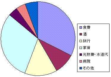 画像は9月分(8/26~9/25)の支出をグラフに表したもの。支出全部を書き出したわけじゃないので精確ではないものの。