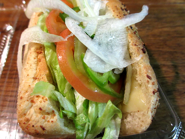 夕食にSUBWAYを。SUBWAYゆめタウン三豊店でお持ち帰り。1日、20日のゆめタウンデーは得サブ以外のサンドイッチがなんと100円引き! そんなわけで、ベジーデライトを3つも購入しました。てへ!(私は2つ、母が1つ) 190円のサンドイッチにいっぱい注文つけてすみません。。。(野菜多め、とかすみません。でも言う) それでも笑顔を絶やさないアテンダントさんありがとう。 ブレッドのセサミが売切れてたのが残念でした。まぁもう夜だしね。 1つはスライスチーズトッピング♪♪ 母にはホースラディッシュソースのドレッシングのベジーデライトを。 「ん?!わさびの風味がする」 わさびといえばわさび醤油ドレッシングがあるけど、私は西洋わさびベースのホースラディッシュソースのほうが好き。 【今日のメニュウ】 ベジーデライト(290円のところ、100円引きの190円)ブレッド:ハニーオーツ(トースト) トッピング:ナチュラルスライスチーズ(+30円) ドレッシング:トリュフオイルドレッシング(期間限定ですよ) 野菜すべて多め ベジーデライト(190円) ※写真なしブレッド:ウィート(トースト) トッピング:なし ドレッシング:バジルソース 野菜すべて多め ベジーデライト(190円) ※写真なしブレッド:ウィート(トースト) トッピング:なし ドレッシング:ホースラディッシュソース 野菜すべて多め