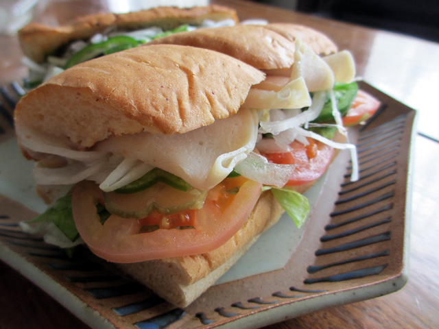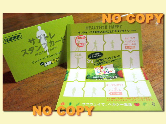 今日はSUBWAYランチ。(この、思いつきでSUBWAYのランチが食べられる、しあわせといったら!) SUBWAYゆめタウン三豊店でお持ち帰り。 こないだ食べたときも気づいたんだけど、お持ち帰り用容器が紙からプラスチックに替わってる! だから持って帰っても形が整ってる。るん ![]() アテンダントさんが野菜をたっぷり入れてくれたのですごくウレシイ。 ターキーブレスト ブレッド:ウィート、トースト ドレッシング:アンチョビソース(期間限定、うひ) 野菜多めで!アンチョビソースがある間(スペインでサブろうキャンペーン中)にターキーブレストで食べてみたかったのです。 アンチョビソースってどういう味というべきか。少し魚臭いって言うのかなあ(生臭いんじゃないよ)。塩っ気は感じますが、塩っからいのではありません。 独特の風味がありますが、私はクセのある食べ物が好きなので、アンチョビソース好きです。 (といってもそんなにクセのあるソースではない。あしからず) ターキーハムが淡白な味なので、ターキーとアンチョビソース合う! ベジーデライト ブレッド:ハニーオーツ、トースト ドレッシング:バジルソース 野菜もちろん多めで!本当にこれで290円って嬉しい。 バジルソースに入ってるにんにくの香りがたまらなく好きです。 さて、先週から始まった【サブトレスタンプカード】四国地区限定のキャンペーンで、 カードは発行店舗限定です。 サンドイッチ(レギュラー)、ラップ、サラダ購入につきスタンプ1個、フットロングはスタンプ2個 スタンプ4個でトッピング(Wミート除く) スタンプ8個でオーブンポテト(S) スタンプ12個でサブクラブカード500円分 or 好きなサンドイッチのプレゼント特典! ※特典と交換した時点でカードは終了※ 有効期限は2013年2月末です。 昔あった、スタンプカードはスタンプ8個でサンドイッチ交換でしたからね…。 でも12個集めたいな~。できれば11月14日から登場する「スモークサーモン&マルカスポーネ」≪期間限定≫をこのスタンプ集めて食べたいのだよ。(いや、スタンプ集まらなくても食べるけどさ) 一番高いサンドイッチが生ハム&マスカスポーネだからそっちを食うべきか。(いえいえ、食べたいものを食べましょう)