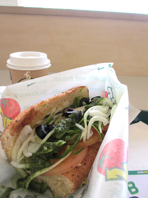 ベジーデライトにチーズトッピングしてきて(マルカスポーネ、クリームタイプ)結論。ナチュラルスライスチーズがいちばんうまい! チーズをトッピングした後トーストしてもらうと、チーズがとろっとする! すげーうまい。 16日(金)に『いいとも!』でランキングをやっていたからか、SUBWAYには行列ができていました。 ゆめタウン三豊のフードコート全体が賑わっていたので(めずらしい・・・)、TVの影響だけではないかもしれませぬが。 チーズは野菜の前に入れるので“トッピング”という言葉はおかしいのではないか、とは母の弁。 (チーズに限りませんが) 【今日のメニュウ】 ベジーデライト(290円)ブレッド:ハニーオーツ(トースト) トッピング:ナチュラルスライスチーズ(+30円) ドレッシング:バジルソース(マヨネーズ抜き) 野菜:すべて多め ホットコーヒー(クーポン使用で100円)