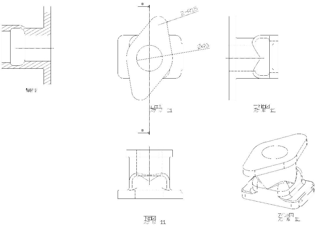 下(左):上の図の三角法による図。どちらもCATIAで描ける。寸法はもっと細かく入れられる。