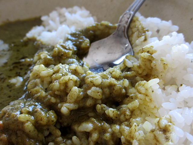 レトルトのグリーンカレーは、インド料理屋さんで食べるグリーンカレーとどうしてこんなに違うのか、と思いながらも何回か食べていたそれはタイカレーでした。 インド風グリーンカレー(ほうれん草のカレー)のレトルトを楽天市場で購入! ハウス食品が出してるんですねぇ。レストラン用って、どんなレストランで出してるんだろ?ちなみに私が買ったのはケンコーコムで、税込224円(2012年10月14日現在)でした。 気になるお味は!? ・・・んー、やはり所詮レトルト。 ほうれん草のグリーンカレーではあるけれど、インド料理屋さんで食べたものとは違いました。 味の深みがね、、、 ごはんで食べました。 ナンにつけて食べたらまた違うおいしさがあるでしょう。ナンのおいしさ次第でしょう(そりゃな)。 不味くはないです。 物珍しさで食べて損はないです。 でも200円出したら、もっとおいしいレトルトカレーが食べられるだろうな。 一応楽天市場のリンクを貼り付けていますが、 別にアフィリエイトで稼ごうとしてるわけじゃないんですが、 いいネタになると思いまして。うっしっし。