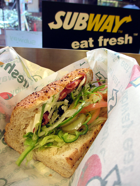 ブレッドはハニーオーツ(もちろんトースト)、野菜多め、ドレッシングはバジルソース![]() 珍しく、“大阪ではちょっとこじゃれたカフェーとか一風変わったタイ料理とかそういうランチを食べてみようかの” と思っていたところに、SUBWAY 梅田HEP FIVE店からの店舗限定クーポンメール がっ。≪全品350円≫(もちろん350円以上商品に限る)というクーポンの内容に惹かれて、 まんまとSUBWAYに行ってしまいましたわよ。 生ハム&マルカスポーネは490円商品ですから、140円もオトク!うひー。 チャージ式のサブクラブカードのチャージ残額がゼロに近い状態が長く続いていて、 チャージUPキャンペーンをひたすら待っていたのだけど(ボーナス額がいつもよりマシマシなキャンペーン) なかなか訪れないので、とうとうチャージしてしまいました。 5,000円チャージしたので、今回の大阪旅の主目的である医療費(カウンセリング代)が足りなくて大慌てでした。 (ゆうちょATMを探して走り回った。けど見つからなかった。 50分のカウンセリングを30分に短縮すべきか悩んだ。 でもせっかく大阪まで来て話し足りないかもしれない事態を自分から作るってどうなのよ、とさらに悩んだ。 などそういう大慌て。 →後払い覚悟でカウンセリングに挑んで、しかし30分でカウンセリングが自然に終了したため、 なんとかお金は間に合った、という綱渡りでした。HA-HA-HA) 話は戻ってSUBWAYランチ。 生ハム&マルカスポーネとベジーデライトを食べました。 めっちゃ食うのにスタイルのいい大学時代の同級生や、 私に比べると小食の高校時代の同級生のことなどを、ふと、なぜか思い出しました。 私は、そのどちらも羨ましい。 どちらもスタイルがいい、というのが前提ではあるのだけど、 いっぱい食べる のも、そんなに食べられない のも羨ましい。 自分の食べる量に不安がない、という点が羨ましい。 サンドイッチを2つ食べながら、正直2つは多いなと思いました。 2つペロリと食べるときもあります。でもこの日はちょっと多いな、と思いました。食べながらそう感じました。 しかし、私の性格上残すことなんてできないし、 この日は帰宅が遅くなる(21時過ぎ)から昼食をしっかり摂っておく必要もあったのです。 結局私は2つ全部食べました。 2つ食べて、それは量としては確かに多すぎるかもしれないけれど、 全然怖がる必要がない、という客観的データ(カロリー表示)は私にとって大きな救いでした。 たくさん食べ過ぎてしまったときに、 “それでも大丈夫、このくらいなら少々食べ過ぎてしまっても大丈夫” と自分に言い聞かせることができるのは、私がSUBWAYを信頼しているからです。 将来的には、1週間単位でカロリーの過多を調整して、“食べ過ぎても不安になり過ぎない” というふうにできればいいけれども、それはちょっとレベル高いな。 私にはまだSUBWAYが必要です。 それに!高レベルまで達しても私のパートナでいてね、SUBWAY~~ ![]()