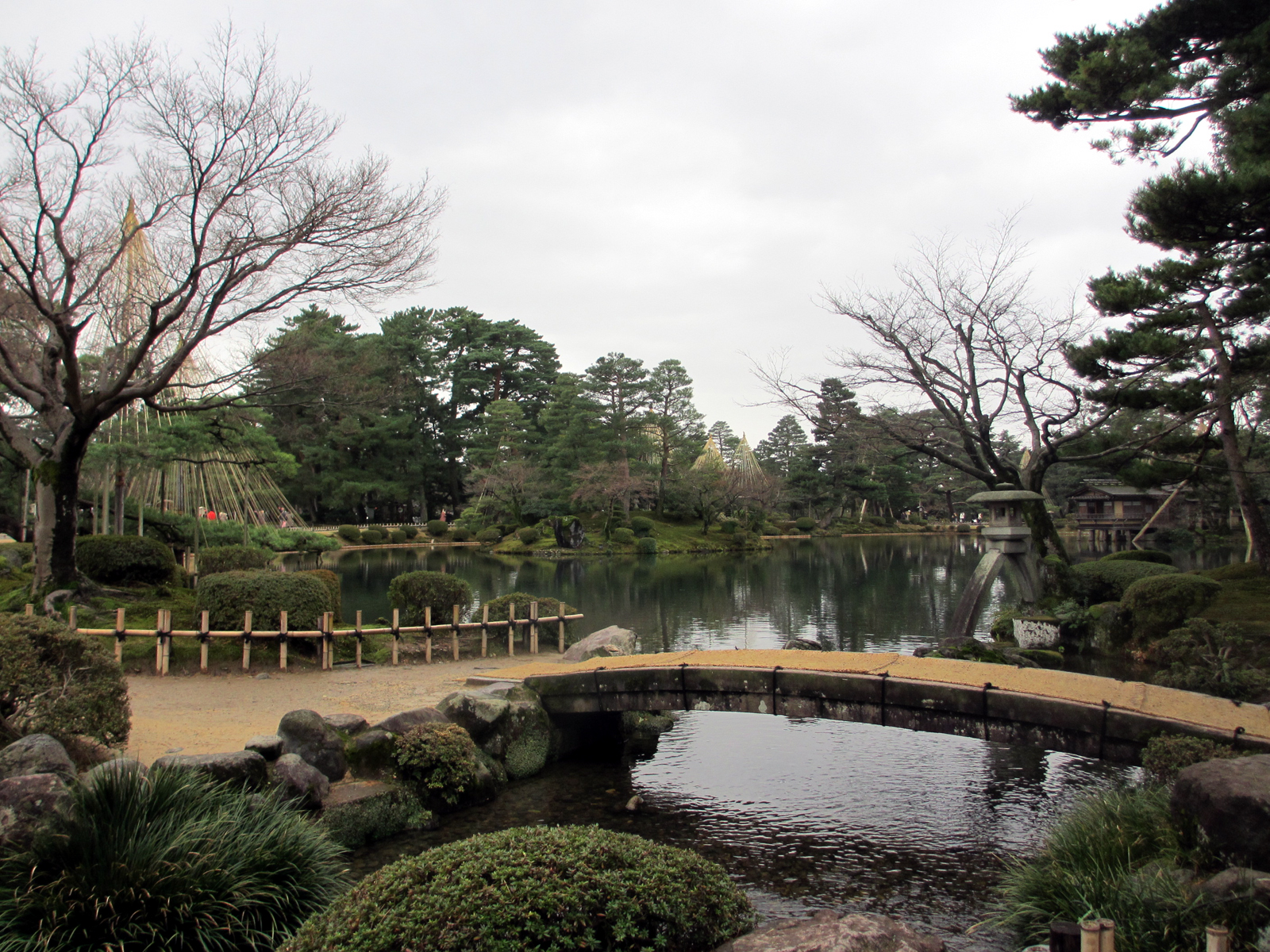 9連休もあるとなると、家でいると倦んでしまいそうで、 12月入ってから思い立って旅行の計画を立てました。 立て始めて知ったのですが、そんなに高くない。 たぶん、もともと高い旅館などは、より高くなるのかもしれないけど、 私が泊まるようなビジネスホテルはお正月はお客が少なくなるからかむしろ安い。 せっかく時間があるので、移動に時間をかけて遠くまで行こう。 雪が見たい!雪が見たいね! ということで、なんとなく北陸に決定。 夜行バスを使って1泊分稼ごう(稼ぐ?)という魂胆があるため、 大阪or神戸or香川から夜行バスが走っているところ、というのも大きな要素。 【大晦日】 出発 ↓ JR:定期使用 高松 ↓ フェリー 三宮 ↓ JR 大阪 ↓ 夜行バス 【元日】 金沢着。 雨だよーーー。 アパホテルで温泉を利用。通常は1,000円のところ、ネットで割引券を発見、600円。 簡易な露天風呂もあり、休憩スペースもあり。バスタオルや室内着も貸してくれた。 ネットで見ていた露天風呂の写真、これはどうやら男性側のようで女性側はだいぶしょぼかった。 最初はアパホテルに宿泊することも考えていたのですが、やめてよかった。 600円の一時利用なら、その価値はありました。休めたし。 まちのりというレンタサイクルを利用して、市内観光。 1日200円で、1回30分以内なら利用し放題、というサービス。 しかし、サイクルポートの場所がわかりづらく、 貸出可能台数にも限度があるため使いづらかった。 30分以内、という制約がけっこうきついわ。 でも、200円支払ったからには、もう絶対バスなんか乗るか!という気になり、 最後まで自転車を使い続けました。 雨は降ったりやんだり。 尾山神社で初詣を済ませ、 兼六園に行き、 金沢城公園に行き、 にし茶屋街に行き、 でも、正月なのでどこも開いてなかった。 ホテルでチェックインしてから、 金沢駅隣接の金沢百番街という観光客向けのショッピングモールで昼食。(15時過ぎ) 夕食の買物をして、ホテルに戻り1日めはおしまい。 宿泊はキャッスルイン金沢というホテル。 3,700円からさらに楽天トラベルの500円分のクーポンを使って3,200円。 大浴場付で非常にお得でした。 ★兼六園 雪が見られなかったのが残念でした。 雪の兼六園を見たかった。 雪のない兼六園はふつうの日本庭園で、 これだったら玉藻公園(高松市)でも構わないぜ!